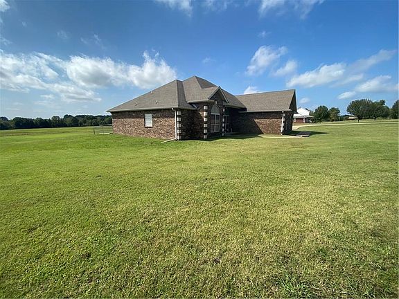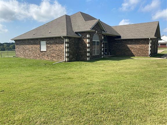 This 2005 built spacious and luxurious brick slab foundation home has 2,336 heated sqft. with 3 bedrooms and 2 bathrooms and a 2 car attached garage. The house sits outside of Muldrow on 3 acres with a 2 garage door metal slab foundation detached shop with a lien-to. The house is huge and perfect for a large family.