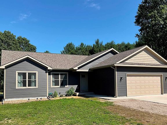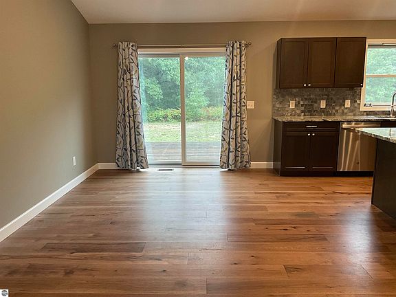 2 year new home w/ with a 30 x 40 detached storage bldg. Open floor plan, plank wood flooring, island kitchen granite counters, soft close cabinets, high end stainless appliances & pantry. Laundry room with utility sink & mud room off the heated, 2 car attached garage. Lower level family/rec room, egress, 1/2 bath & ample storage area. Upgraded Bosch Heat/AC, pressure tank & water softener. Storage bldg (1 year new) has 12' height with electric & cement floor. Nicely wooded 7.7AC property that backs to over 130 acres State Land. Close to the Village of Interlochen, Traverse City & Lake Ann. Spectrum high speed internet.