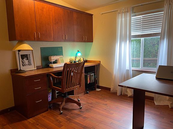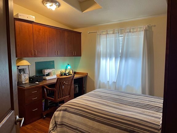 This fully furnished two-bedroom, one-bath home is located on a quiet cul-de-sac in the lovely gated community of Latitude 49. Enjoy relaxing on the covered porch, stroll around the park, or meet your neighbors at the clubhouse for a potluck dinner. This beautifully maintained community includes a pool and hot tub, pickleball and tennis courts, a gym, a putting green, and a clubhouse - too many amenities to mention. The primary bedroom has a luxury queen-sized adjustable bed and blackout curtains. The second bedroom has a full-sized murphy bed that neatly tucks away when not in use and a built-in desk for your workspace and hobbies. The kitchen appliances include a full-size refrigerator, electric oven/range, microwave, dishwasher, garbage disposal, and bbq on the porch. The bathroom boasts a convenient walk-in shower. The air conditioner keeps you cool during those warm summer days, and for those chilly evenings in the fall and winter, an electric fireplace completes the cozy atmosphere, adding warmth and ambiance to the living room. A washer and dryer are conveniently in the home, and a 65" smart tv. Just bring your suitcase, everything else is provided. This is a non-smoking home. The renter pays for water and electricity. Sewer and garbage included. Parking space in front of the house and additional guest parking at the clubhouse. Minimum stay is 6 months. One month deposit of $1900 (refundable), and cleaning fee $350 (non-refundable).