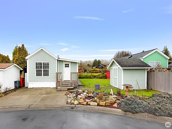 Highly Sought after unrestricted 365 day home in popular Latitude 49 Resort Park! This single level unit is flooded with sunlight, and is tucked well off the Birch Bay Lynden RD, just steps away from the community amenities: Outdoor pool, Hot tub, Clubhouse, Playhouse, Conference room, On-site Laundry Facilities, Library, Gym & Sports courts - All tucked behind the secure gated entry. Low monthly HOA dues & well managed association. Located on a private Cul-de-sac with lawn, mature landscaping, ample parking, & recent renovations including finished flex spaces (7' x 15' & 7' x 12') for an additional 185 sqft (580 sqft total) storage shed with power outside for toys and lawns tools. You could add an additional 330 sqft to the unit as well.