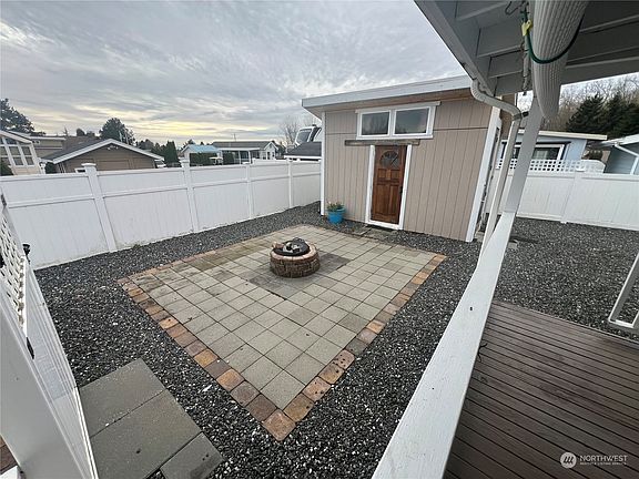 Adorable year round use- park model home in the sought-after Latitude 49 Resort! This charming 1-bedroom, 1-bath retreat features vaulted ceilings, air conditioning, and an expansive deck perfect for relaxing or entertaining. Outside, enjoy a private, fenced firepit area, garden space, and a shed with power—ideal for the included washer/dryer installation. Latitude 49 offers an array of amenities, including a sparkling community pool, sports courts, a game room, fully equipped exercise room , and an on-site laundry facility. Whether you're looking for a cozy full-time residence or a vacation getaway, this property is a fantastic opportunity to enjoy resort-style living! This is a full time 365 use property.