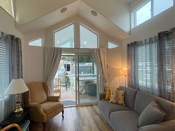 Well maintained Park Model in Latitude 49, 180 day lot. This unit would be great for weekenders, snowbirders, or someone wanting to get away from the hot Southern summer. Park Model has extended roof line over one end making for a nice sized covered deck for outdoor living. Lot is big enough to park an RV or what have you, there is a tool/garden shed. Enjoy all that the resort has to offer, clubhouse, tennis, pickle ball, outdoor pool, hot tub, exercise room, putting green, organized activities, laundry facilities, located just a short bike ride to Birch Bay's promenade, and sandy beaches. Many restaurants close by. Security gate helps keep your stuff safe when you're away.