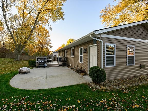 Move in and enjoy the holidays in this 3 bedroom, 2 bath ranch on a half acre lot with great curb appeal. Updated kitchen with leathered granite countertops, ceramic tile backsplash (2020), ceramic tile floor and stainless steel appliances (2019). Living room with vaulted ceiling and beam details opens to the dining room with a slider to the backyard. Enjoy entertaining inside or out on the large patio or TimberTech deck (2018). Sunroom off the kitchen with gas fireplace, solid pine beam floating shelves and access to patio; completely gutted and redone in 2019. 3 Bedrooms and an updated full bath with tile shower finish off the first floor. Beautiful hardwood floors through the living room, dining room, hall, and all 3 bedrooms. Walkout lower level includes a large family room, lots of storage and a full bath in the laundry room. Detached 2 car garage is heated with a gas furnace, electric and has water available. Attached 2 car garage heated with water and drain. Since 2018, seller