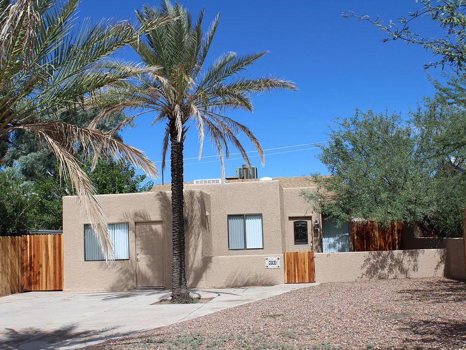 Look no more. New exterior paint, new fence and gates for added privacy in front. Bright and open with vaulted ceilings this split 1989 YEAR BUILT 3BR/2.5 BA provides formal living room, open kitchen,tile counters, 2 full batha, separate den/office/studio with bath and separate entrance. Oversize windows that bring in the light and versatile floorplan with extensive use of ceramic tile make this updated home very desirable. Full length covered patio and storage shed with new door. Plenty of off street parking,Short walk to University High and Rincon High school.