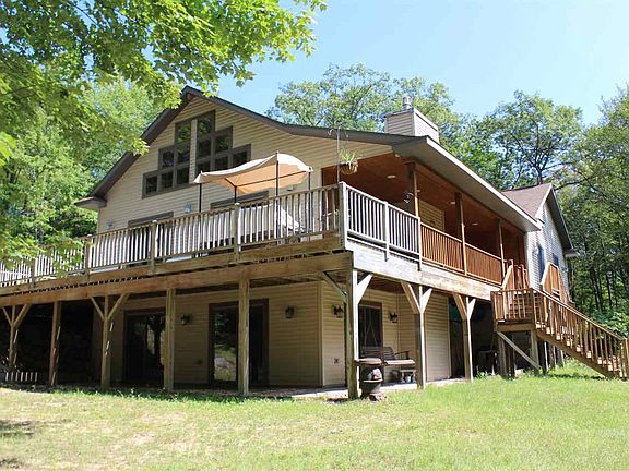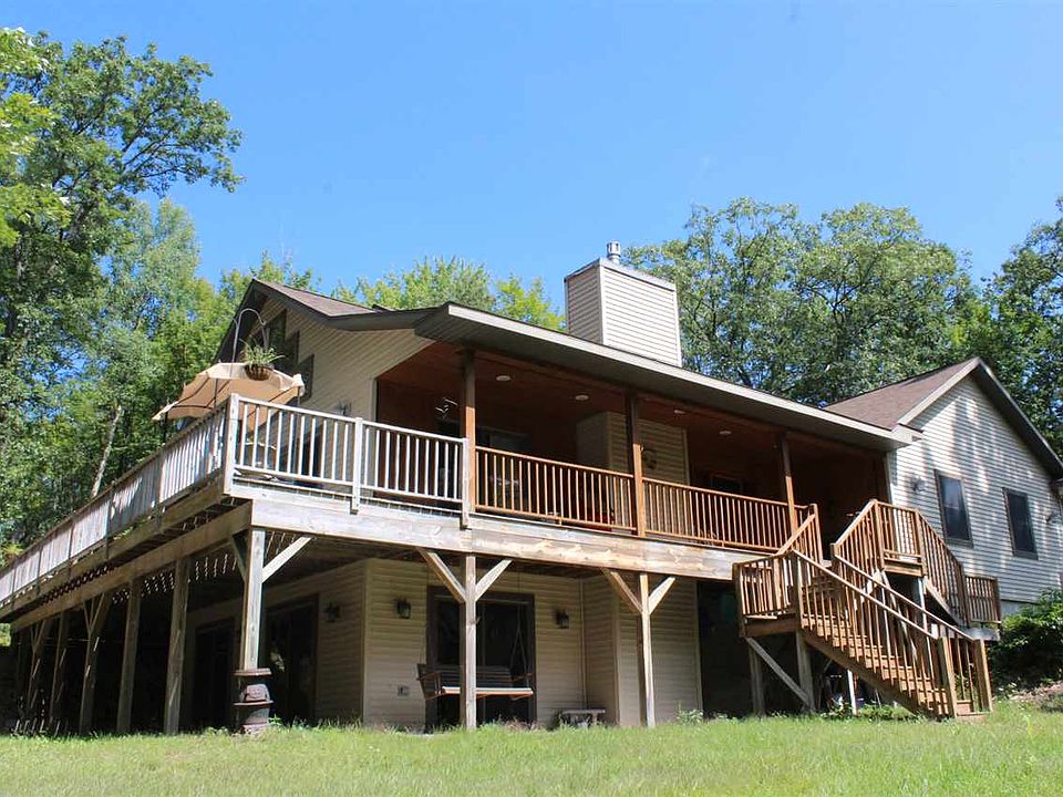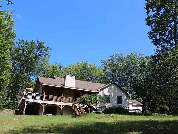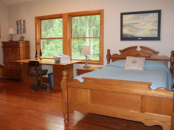 THIS is the one you have been waiting for! This beautiful home was custom built in 2001 and is nestled on 23 acres of beautiful wooded setting. These woods provide a peaceful atmosphere with acreage surrounding you. This charming home offers hardwood floors through out as well as ceramic tile in a select few locations. The kitchen offers a nice walk in pantry and the basement provides a lot of room for storage or could be turned into the perfect entertaining space. The basement is already equipped with a 1/2 bath. This home does have a separate "in law" suite or attached apartment. This could be used as the master suite wing of the home or used as a rental. There are so many options this home has to offer and is a great location for hunting! Don't wait, schedule your showing today!