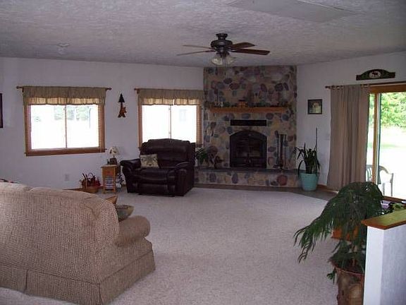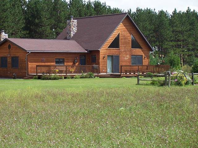 Beauty, warmth and value can be found in this outstanding Golden Eagle Log Home. This 2 bedroom home features a living room with large stone fireplace and opens up to a deck to expand leisure activities into the great outdoors! Loft area overlooking efficient kitchen and bright & sunny living room. 38x64 pole building set on 3.5 acres.