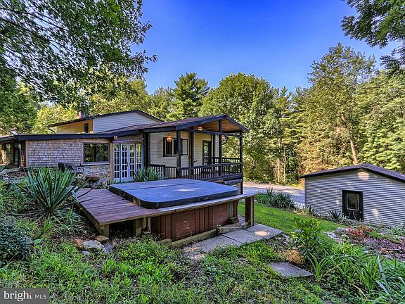 This beautiful, secluded split level home is perfect for the nature lover. Situated on a private 2.35 acre lot this home offers a very private and peaceful setting where beautiful views of the sunset can be enjoyed from the covered side deck. Unwind after a long day in the hot tub while star gazing. This home has recently be redone with many wonderful upgrades to offer. Spacious family room with a wood burning stone fireplace, oak trim and large built in storage cabinetry with glass doors and shelving. Bright & open kitchen with custom chestnut counter tops, large center island and stainless steel appliances. Separate dining room with large bay window offering great views! Relaxing master bedroom with six panoramic windows, stone and natural wood walls and a private bath with claw foot tub. Three additional nice size bedrooms and a full bath with custom tile shower. Enjoy relaxing or entertaining on the large covered side deck or patio with hot tub. Attached one car garage, detached oversized one car garage with separate side entrance door. Detached 18 x 18 two story barn with electric, finished walls, overhead storage with separate entrance door and large sliding door. The gardener in the family will appreciate the 11 x 8 glass greenhouse with work benches! Fire pit area with built in swings is ideal for nature and wildlife viewing. Beautifully landscaped with mature shade trees. Large circular driveway with turnaround area. Eastern York School District. Call today to schedule your private tour!!