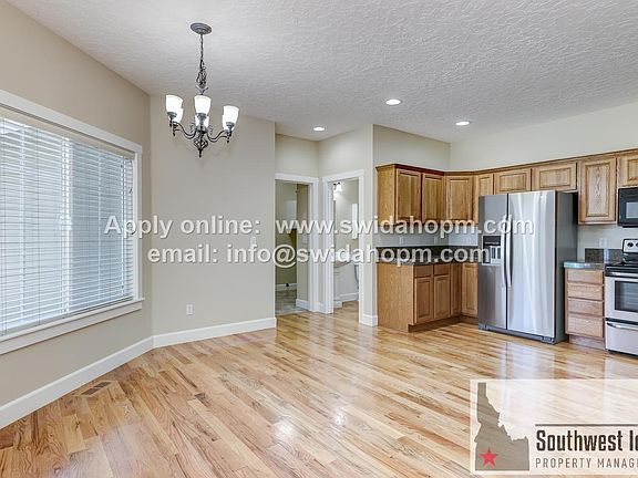 Spectacular 3 Bedroom, 2.5 Bath 2-story Townhome, attached 2 car garage in North Meridian. Bonus: Includes Lawn Care Services! Relax and enjoy your free time and take a dip in the community pool. Available, March 2023! This charming home has it all and is located in a highly desirable neighborhood. Super clean with nearly 1700 sqft. This beautiful home offers a spacious floor plan with natural lighting and has an open concept living room and kitchen. The kitchen features SS Appliances, and a breakfast bar for extra seating. Downstairs Floor Plan:: 1/2 Bath, Laundry Room, Utility door with direct access to the 2 car garage, open living room with a gas fireplace, sliding door to the covered backyard patio and fenced backyard, kitchen has all SS Appliances, includes refrigerator. Upstairs Floor Plan: (3 Bedrooms and 2 Full Bathrooms upstairs) Large primary bedroom ensuite, vaulted ceilings, walk in closet with custom shelving, and a dual sink vanity. Plus, 2 additional bedrooms identical in size with closets and custom shelving. All bedrooms are upstairs. Located in North Meridian in an amazing community near McMillan and Linder. If you're looking for convenience, this location is prime! Close to Restaurants, Rocky Mountain High School, Sawtooth Middle School, Costco, Eagle Island Shopping Center, Sawtooth Village, Orchard Village Center, WinCo and the upcoming new Library. 12 Month Lease, Property Liability Insurance Required (Renter's Insurance). Tenant is responsible for all utilities. The required security deposit/move-in fee of $2200 breaks down as follows: non-refundable administrative fee of $200.00, refundable security deposit of $2000.00. Tenant adheres to all HOA/CC&R's. This information is deemed reliable but not guaranteed. Renter is to verify all information. We do not list on Craigslist, please verify directly with property management. Zillow applications are not accepted. Tenant to supply own washer and dryer. Visit our website directly to apply. Southwest Idaho Property Management Small Pet subject to approval and screening process. Pet Rent/Fee will be determined based on 3rd party screening process.