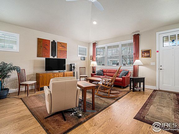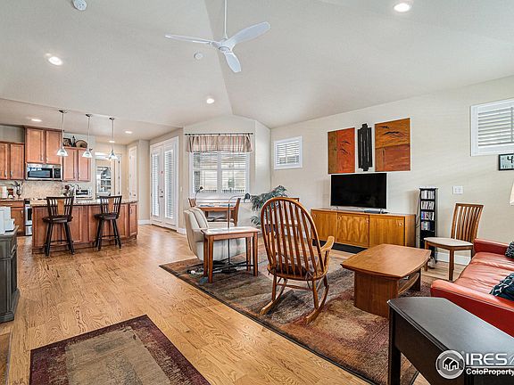 Beautiful MacKenzie Place cottage located in the heart of Fort Collins in an exclusive 55+ community. With an open floor plan and plenty of natural light this cottage features a spacious living area with oakwood flooring perfect for relaxing or entertaining. The modern kitchen comes equipped with stainless steel appliances, granite countertops, an upgraded Bosch dishwasher and plenty of cabinet space for all your storage needs. You'll love the primary suite, complete with a walk-in closet and an en-suite bathroom featuring a true stepless entry shower. Plenty of upgrades including an active radon mitigation system, ceiling fan, white patio fence, furnace humidifier and a Knox Box. The emergency call system, fire, smoke and CO alarms is an additional feature that offers safety and security. Buyer has access to the MacKenzie Place senior living amenities, and to be a part of an active adult lifestyle.