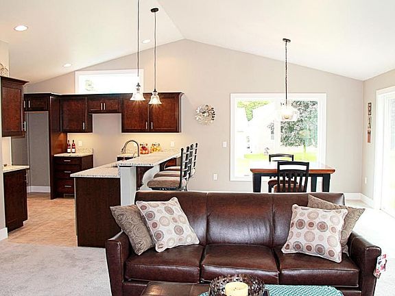 Brand New 3 Bedroom 2 Bath 3+ car garage Home. This level entry (no steps) Craftsman Style home features a maintenance free exterior with premium vinyl and stone. It also features Maple cabinetry and granite Counter tops. Custom tiled shower, Widescreen fireplace, Walk in pantry, First Floor laundry. Lower level has egress window and pre-designed for future (Bedroom, family room, and bath). Landscaping and concrete driveway are in. Ready to move right in!
