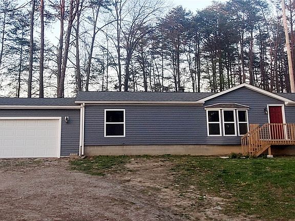 Secluded, partially wooded, 6+ acres with a beautifully, remodeled manufactured home. Living room w/stone Fireplace. Kitchen w/new cabinets, countertops, and stainless steel appliances. Dining area. 3 bedrooms, 2 full baths. Master bath w/ new vanity, tub and commode. 24x24 attached garage with new sheetrock, paint, insulated garage door and opener. Interior updated features are flooring, paint, doors, lights, fans, hardware and much more. Updated exterior features include roof, siding, windows, skylights, HVAC, gutters, deck to name a few. Drive to be graveled and landscaping to be finished within a few weeks.