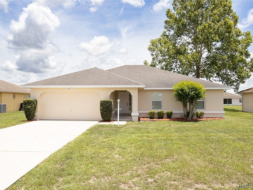 Don’t wait! Come today and take a look at this amazing block/stucco home in fabulous Marion Oaks. Located just a stone's throw away from HWY 484 and I-75, you're minutes from shopping, dining, entertainment, and schools. This beautiful home has been immaculately maintained and awaits its new owners! Featuring 1807 sq ft of living space, with 3 bedrooms, 2 full baths, a private family room, 2 car garage, and laundry room, this home has plenty of space for your family and guests! Approaching the front door, you will notice the new landscaping along with the exterior paint(2023). As you enter the front door you’ll notice the updated interior paint, and step into the spacious private family room that has updated lightning features and leads to your back lanai. Enjoy entertaining your guests in the large separated kitchen and dining area where you will find an abundance of cabinetry and pantry space! The kitchen also features a large stainless sink along with a stainless refrigerator. Both guest bedrooms have ample closet space along with new lighting/fans. The guest bath features a shower/tub combo and is conveniently located next to the kitchen. The master bedroom is spacious and features a large walk-in closet and an ensuite master bath accented by dual vanities and a large shower. The back lanai is a great place to relax and enjoy summertime BBQs with family and friends. Plenty of parking in the garage as well as the large driveway. Location, condition, and price, this house has it. Come take a look today before it’s gone!