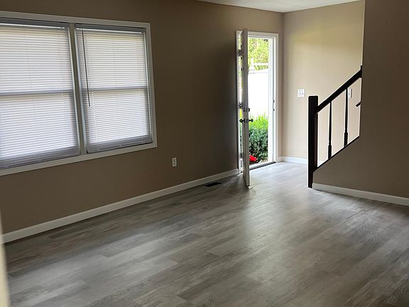 Unit has been completely renovated. Entire kitchen and bathroom cabinets, floors, carpet, all interior/exterior doors. New deck, ample parking, 1 garage w/ new door and opener. Apartments equipped with brand new stainless steel appliances, stone countertops, washer and dryer hookup, central heat and air. Full basement. Move-in ready! Application fee applies. Tenant is responsible for all utilities. No pets. No smoking. Security deposit and first months rent due upon lease signing (1 yr). Lawn and snow removal included.