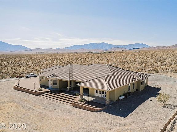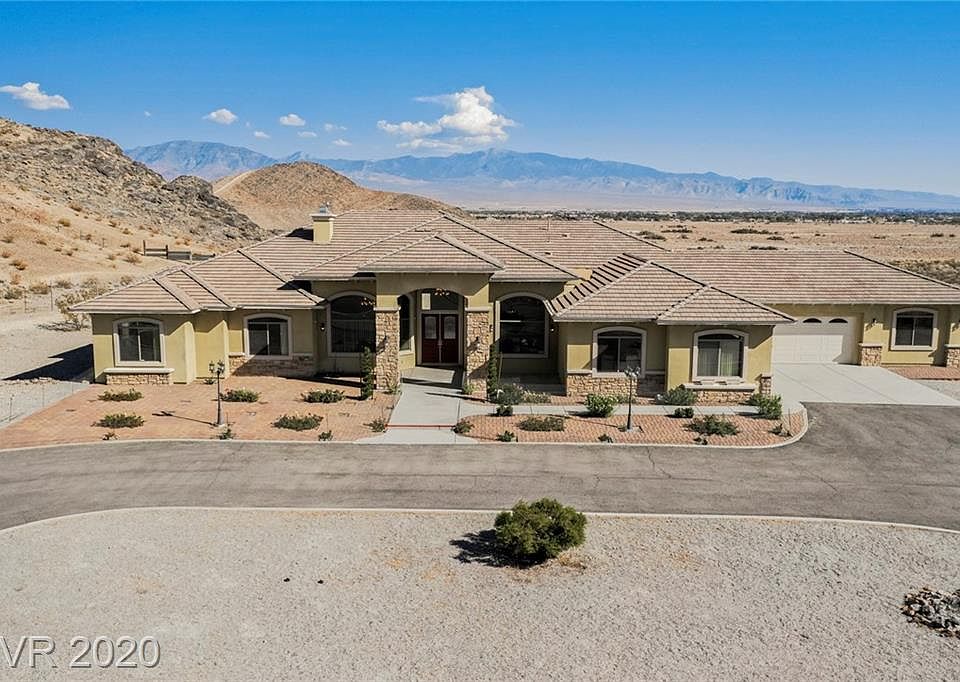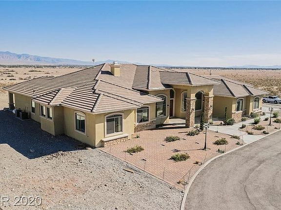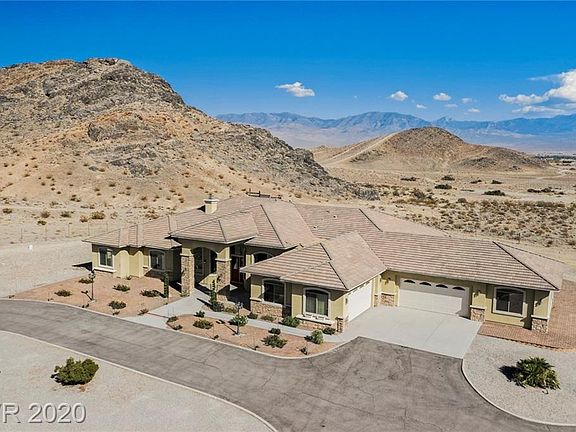Nestled against the mountain, this 5,500+ sqft model home sits perfectly between Las Vegas and Death Valley, surrounded by mountains, ATV trails, camping, motorsports, tactical training, gaming, and hot springs. Featuring 84+ acres of land and has four en-suite bedrooms, plus one-half bath, office, two dens, and four-car garage. Sunset Valley is an approved subdivision for 50 one-acre home sites including roads, easements, walking trails, and much more. Site development was prepared by Civil Wise Engineering.