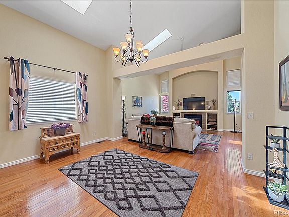 Updated and ready to go! Located in the popular Province Center tucked away on a quiet. Two parks within walking distance, including one at the end of the cul-de-sac! This 2-story has an open main level featuring hardwood flooring in the living room flowing into the family room, dining area and updated kitchen. The family room boasts a gas fireplace, built-ins, plantation shutters, ceiling fan and two skylights with shutters. The kitchen has granite counters, stainless appliances and undermount sink, lots of counter space and cabinets. A powder bathroom and laundry area with washer and dryer round out the main level. The upper level has a large primary suite with a ceiling fan, walk-in closet and 5-piece bathroom with a double sink, stand alone shower and soaker tub. A full bathroom and two more additional bedrooms are also upstairs. One bedroom has a ceiling fan and views of the mountains and night time views of the twinkling lights of downtown. Oversized 2-car garage has a south facing driveway which makes for great snow and ice melt! The garage has ample shelving and storage space. The unfinished basement is a blank slate with a structural floor and brand new water heater. Nice sized backyard with included shed and new fence. Very low HOA fees and resident rates for all South Suburban amenities including the brand new Sports Complex off of County Line and Holly along with 7 rec centers, 4 outdoor pools, 2 ice arenas, pickleball courts and more! Great proximity to amenities, County Line Road, C470 and University.