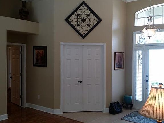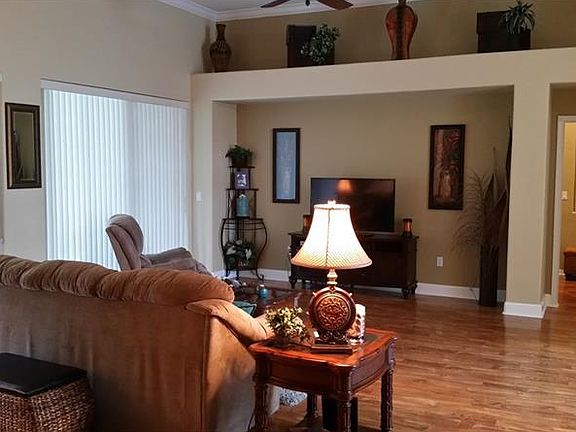 This magnificent split plan home shows like a model. From the minute you enter into the foyer, you will be overwhelmed by the open floor plan. The grand living room with upgraded flooring, crown moulding, pre wiring for surround sound, and five inch base boards, has two large sliding doors that let the sun in and lead out to the covered patio. Just around the corner to your right is the den/office with French doors and large window. Also on this side of the home is the huge master suite. The large master bedroom has an oversized walk in closet, tray ceiling, and with no side neighbors plenty of sun to fill the entire room. There is also another slider out to the patio. The master bath has two vanities, a jetted garden tub, and separate stall shower. On the other side of this home are the other two bedrooms, second full bath, inside utility room with wash basin, and the large kitchen with separate breakfast nook. The 42 inch oak cabinets with crown moulding really set the tone for entertaining. There''s plenty of Corian counter space, and even a built in work station. With upgraded refrigerator, closet pantry, and glass top range, this gourmet kitchen is fantastic. There''s even a view of one of the communities several ponds. Sit at the table or at the breakfast bar and let the sun shine in through the large window. With many of the areas main highways close by, getting to Wiregrass mall, Tampa Premium Outlet Mall, Tampa International Airport, or any of the other major shopping centers is quick and easy.