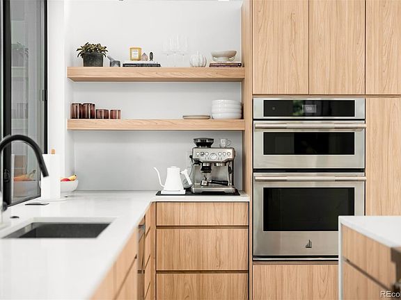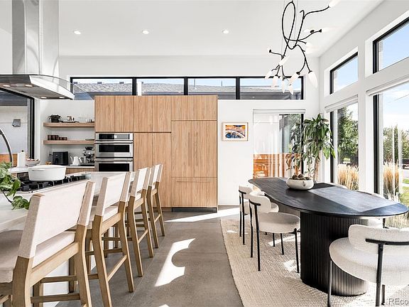Bathed in natural light and designed with balance in mind, this home offers a living experience both expansive and grounded. Soaring ceilings and walls of windows invite light throughout the day, while accordion-style doors optimize indoor-outdoor living. At the center of the home, a chef’s kitchen with quartz countertops and waterfall island, sleek cabinetry, and professional-grade appliances, including built-in refrigerator and double oven, anchors the open living and dining areas. The main level features three bedrooms plus a dedicated flex/office space, including the sun-filled primary suite with expansive windows, walk-in closet, and luxurious ensuite bath with standalone tub, dual vanities, water closet, and walk-in shower. A secondary bedroom includes a private ensuite bath, while the third west-facing bedroom is bathed in light, ideal as a guest room or office. A full hall bath serves guests, and a compact laundry on the same level as bedrooms adds everyday convenience. Downstairs, the fully finished basement extends versatility with two additional bedrooms, a spacious recreation room with wet bar, a full bath, a second laundry, and generous utility/storage space-ideal for organization. Outside, the private courtyard opens to a generous backyard with space for dining, play, and everyday enjoyment. A sauna adds an element of wellness just steps from your door. Completing the property, a detached two-car garage provides secure parking and valuable storage. Finishes were selected with intention, from Porcelanosa tile to upgraded Marvin windows, reflecting a quiet commitment to quality and design. While the interiors offer serenity, the location delivers energy and access: close to Sunnyside, Berkeley, the Highlands, and Tennyson Street, with effortless connections to downtown Denver, Boulder, and the mountains. A residence where scale and stillness meet, crafted for those who value both livability and design.