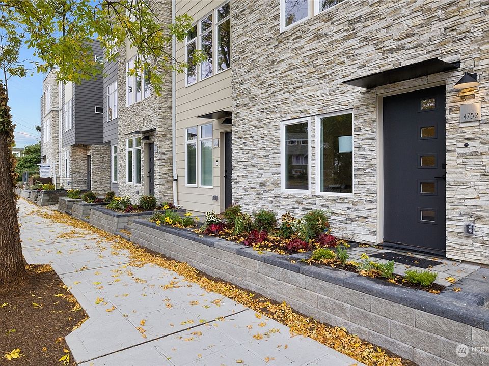 Another amazing project by Roland Development! Great location with easy access to Fremont, Wallingford & Greenlake amenities, Modern, classic aesthetics with functionality, clean lines & high quality finishes. Spacious end unit with custom elements and light filled spaces. Hardwood floors through out, custom tile work and thoughtful design with 2 bedrooms, full bath on the first level, a spacious well appointed kitchen on the main level that features high end appliance package, quartz countertops, fine cabinetry, tile backsplash, huge windows that let in tons of light, and a powder room! Gorgeous  primary suite w/ walk in closet and a spa like  primary bath. Don't miss views from rooftop deck!! Side walks are now complete for easy showings.