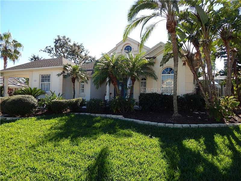 Beautifully updated and renovated Key West style home in a popular boating community. Light and bright open floor plan with upgraded architectural features. Island style kitchen with glass front cabinets, marble stone countertops and stainless steel appliances. Master bath has jetted tub with separate shower, dual vanity with stone counters. Screened in pool with views of boating canal. Community marina right across the street with boat slips available for access to gulf.