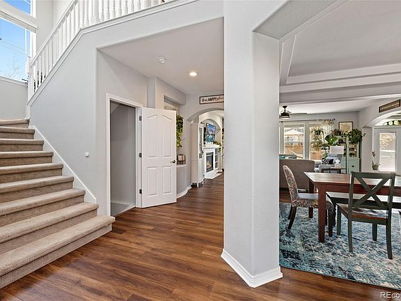 This is the dream house on the dream lot! From your front porch, you’ll be able to watch the sunset behind Harvest Park, just two doors down. Imagine welcoming guests in the breathtaking two-story entry. An abundance of windows keeps everything bright and airy through the open floor plan. You’ll appreciate details such as the coffered ceiling in the formal dining room, arched doorways, and built-in storage. The chef-inspired kitchen features stunning white quartz countertops, designer two-tone cabinets, a Farmhouse sink, updated stainless steel appliances, a large butcher block island, double ovens, a walk-in pantry, eat-in space in the kitchen, and a built-in workspace. The laundry room doubles as a mud room with a utility sink and storage space. The functional floorplan includes a main floor bedroom with a dedicated ¾ bathroom and an additional half bath on the main level. Upstairs is a sunny loft, with the primary suite off to the left. French doors open into the stately primary suite, which includes a 5-piece ensuite bathroom and walk-in closet. Both upstairs secondary bedrooms are generously sized and offer privacy from the primary suite. In the fully finished basement, the possibilities are endless in the bonus space! There is also a move-in-ready large bedroom with a walk-in closet and an additional ¾ bathroom downstairs. Flooring throughout has been updated with new carpet in 2021, and luxury plank flooring in 2023. The HVAC was updated in 2021 with a new furnace, central air, humidifier, and Nest thermostat. The interior was painted in 2021, and the roof was replaced in 2018. The gigantic deck, gazebo, professionally installed paver patio, and built-in firepit were made to soak in the outdoors. Gardeners will delight in the space the shed and greenhouse offer to perfect their green thumb. The corner lot (which is over ¼ acre) and mature landscaping offer additional privacy to find serenity in your backyard oasis. Come fall in love today!