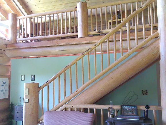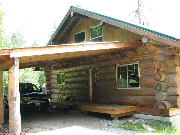 BEAUTIFUL LOG HOME OFF THE GRID ON 20 PRIVATE ACRES Set up for self-sustained living, gravity feed water, solar power W/back up propane Onan- Cummings generator, Amish wood cookstove heats the house & water, & back up Rinnai propane on-demand hot water heater, Beautiful Log Home, Main Floor 1 Bedroom & Bath & Lg Open Great Room w/Kitchen & Dinning, Loft set up w/add'l Bedroom , vaulted pine tongue & grove ceiling, sweeping views, large picture windows & hand-hewn log railings, Unfinished Daylight Basement framed for Master suite and bathroom, two additional bathrooms, a utility room, storage and a root cellar.