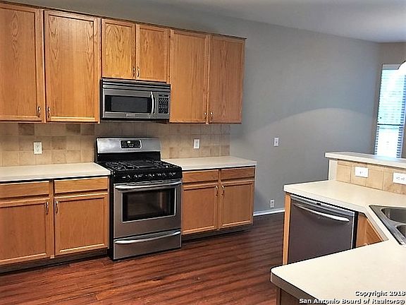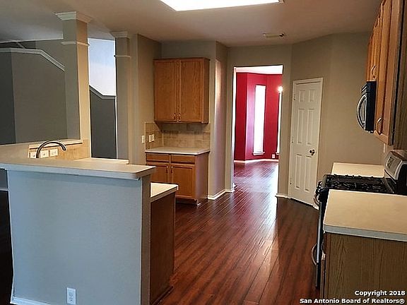 Come see this fantastic 4 BR/3 Bath home in Schertz! Stunning hardwood flooring in the downstairs entry, dining room, kitchen and living room. Open kitchen w/42" cabinets, gas cooking, bkfast bar, bkfast nook w/bay window. Spacious living room w/fireplace. Large game room upstairs w/loft area. Gorgeous master suite w/bay window, dual vanities, separate tub/upstairs. One BR downstairs offers excellent flex space. Beautiful gated community w/mature oaks, community pool and playground.
