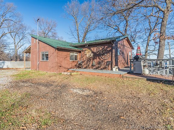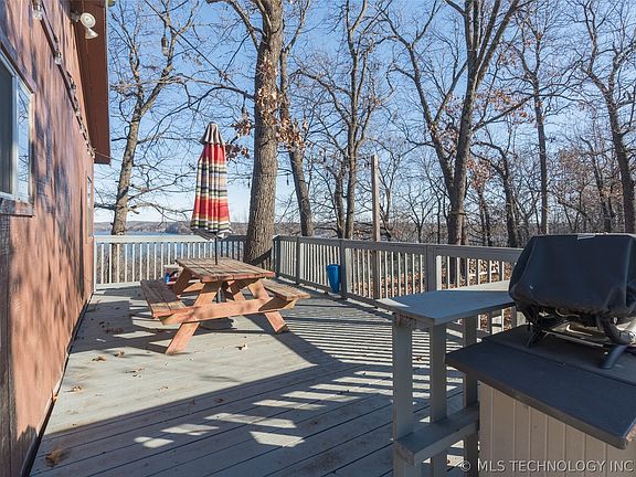 Buy 2 homes on one property! Live in one and rent the other! Main residence is a cabin overlooking Lake Hudson. It has beautiful wood accents, cedar and pine, throughout on walls and cabinets and on 2 ceilings. Residence has 2 bedrooms. Heat includes electric decorative fireplace in living room and propane wall heater. Property has 3 RV parking spots with electricity, 2 have 30 amp and 1 has 50 amp. 50 amp has its own meter. Acreage is 2.76 MOL which includes a 2nd Residence at East end of the property, about 40 x 12, and has its own septic and utility meters and includes a 10 x 12 storage building. 2nd Residence fronts Waterline Road and would be great for a single person or couple, and has a loft for additional sleeping and could be used for a rental or B & B, just a short distance to Lake Hudson. Both Residences have Year Round Super Views of Lake Hudson about 1/4 mile from primary residence and just across the road from the 2nd residence. Outside buildings near primary residence include a 1360 sq ft Barn, which has one room with concrete floor. Storage building with lean to is 144 sq ft. Garage which is 40 x 12 is insulated and has work bench and shelving, and 2 lofts for storage. All buildings have electricity. Come and enjoy your own get away and a chance for income from the 2nd residence located thru the woods and away from the primary.