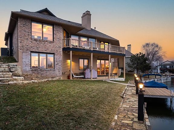 Welcome home to luxurious lake living with this 5bed/5bath/3car ranch located in the highly sought-after neighborhood of The Moorings on Crystal Lake. With a 120 acre lake and approx. 4 miles of shoreline right in your backyard, you can wake up every day feeling like you're on vacation. Enjoy sunset cruises, fishing, kayaking, boating or just relaxing in this gorgeous lakefront residence. The 4,300+ sq. ft. home sits on one of the most desirable lots in the neighborhood, providing exquisite panoramic lake views from nearly every room in the house. The gourmet kitchen is a chef's dream with top-of-the-line Wolf appliances, including a built-in wall oven, multi-functional convention steam oven, and a gas rangetop with infrared charbroiler, built into the custom butcher block island countertop from Elderslie Woodworks of Valley Center, KS. Additional kitchen highlights include a custom-built pantry, Bosch dishwasher, quartz counters, upper & lower cabinet lighting, and an undermount sink. The kitchen opens up to a large hearth room that provides space for a dining table, plus room for your comfy furniture to cozy up next to the two-way fireplace. A built-in desk area and wet bar adds to the functionality of this space. On the other side of the fireplace is the main living room illuminated by a full wall of picture windows to enjoy the beautiful open views of the lake. A formal dining room at the front of the house is perfect for hosting larger gatherings. After a long day, retreat to the master bedroom suite, where you can relax and enjoy your private lake views or slip out to the back deck to take in the peace and quiet of your outdoor oasis. The spa-like master bath features a huge zero-entry tiled shower with built-in niches and seating bench, large double sink vanity with make-up table and ample storage. Don't forget to check out the extensive walk-in master closet. There are built-ins galore with multiple shelves for folded clothing & bags, large shoe rack and pull-out drawers for storing all of your year-round clothing items. The second main floor bedroom is currently being used as an office with private access to the renovated guest bath. The expansive main floor laundry room boasts its own half bath, a wash sink, large folding area atop tons of cabinet storage and a built-in ironing board. The full walk-out lower level of this home is just as, if not more, impressive though. As soon as you walk down the stairs, you are greeted with floor-to-ceiling windows allowing for even more unobstructed lake views. This basement living area is great for entertaining with a second kitchen fully-equipped with a refrigerator, dishwasher and a GE Monogram 4-burner gas range with griddle. The custom-made bar top and counter are also from Elderslie Woodworks. Relax in front of the fireplace or expand your living space outdoors by opening the full bank of glass accordion doors to the covered back patio. Summer cookouts will be a breeze with the built-in Napoleon natural gas grill that remains! Amazing views of the lake can also be seen from Bedrooms 3 & 4, separated by an updated jack-and-jill bath. Bedroom 5 provides even more space to spread out and plenty of storage with its two closets. Another half bath and a huge storage room round out the lower level. Outdoor amenities include a sprinkler system, irrigation well, invisible dog fence, large upper deck and a covered patio that overlooks the private dock on Crystal Lake. In addition, the oversized garage is fully sheet-rocked with epoxy flooring for extra durability. This home has NO specials taxes and very affordable HOA dues. On top of all that, enjoy exclusive events hosted in the Moorings neighborhood, including extravagant 4th of July firework displays, boat parades, access to the Moorings beach area and live band performances on the lake! Homes in this neighborhood with these views don't come along very often. Don't miss out on your opportunity to enjoy lake life at it's finest!