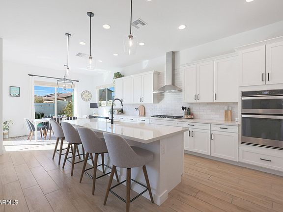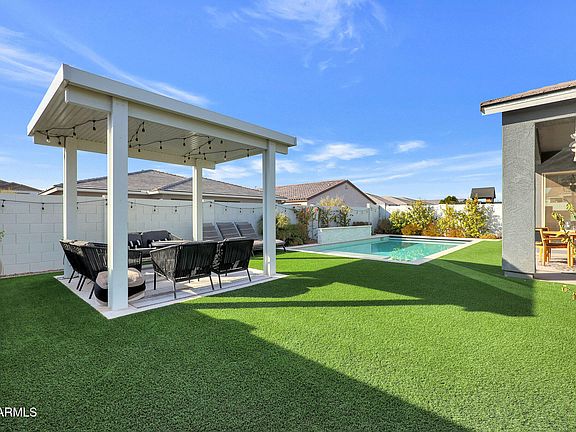 Seller willing to offer credit to buyer! BEST HOME ON TOUR WINNNER! Why build new when you can have a beautiful completed backyard?This well cared for 2021 build has all of the upgrades you're looking for and a backyard perfect for entertaining and relaxing fun! This 3-bedroom + den, 2.5-bathroom home offers a thoughtfully designed split floor plan, providing privacy and functionality for modern living. The open-concept layout seamlessly connects the living, dining, and kitchen areas, making it perfect for both everyday living and entertaining. The gourmet kitchen is a chef's dream, featuring stainless steel appliances, an oversized island, and ample cabinet space. The spacious great room is filled with natural light and flows effortlessly into the backyard. , where you'll find your own private oasis. Built in 2022, the gorgeous pool is perfect for escaping the Arizona heat! The automatic, retractable pool cover makes maintain the pool a breeze! Residents enjoy access to parks, walking trails, community events, and top-rated schools. Conveniently located just minutes from shopping, dining, and Mesa Gateway Airport, this home offers both luxury and accessibility. Don't miss the opportunity to own this move-in-ready gem.