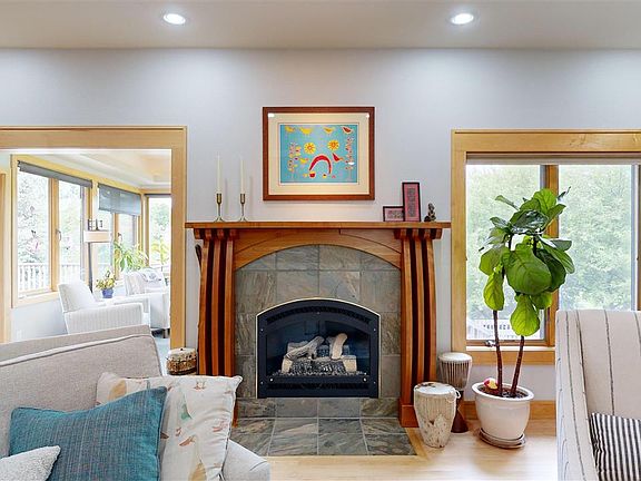 Nestled on a quiet cul-de-sac in Windsor Ridge, this 5 bed, 5 bath home truly has it all! The moment you step inside, you're bathed in natural light and met with stunning custom woodwork throughout. The large living room, dining area, and kitchen have an open floor plan that flows together seamlessly with birdseye maple floors and inset carpet. The kitchen features a bar-height breakfast bar, custom cherry cabinets, custom wood panel refrigerator door, gas range with hood, & loads of storage! Walk into the lovely 4-seasons room looking out on the stunning flowering trees and beautiful landscape and then step out to the upper-level deck with built-in gas line for a grill. Main level boasts two bedroom suites plus a 3rd bedroom & full bath, not to mention the spacious office with custom built-ins and new flooring. The large primary suite has a spacious custom closet and beautiful ensuite with a large tile shower and separate vanities. The lower-level offers more living space including 2 bedrooms, 2 baths and a whole lot of storage space. The large family room is equipped with a wet bar, large projection screen, and a brand new projector giving you a fabulous in-home theatre powered by Alexa. Walk out of the lower-level to the covered patio and raised lower deck. The upper and lower decks are connected by stairs and have both been refurbished and repainted. Attached two-car garage and additional 1-stall garden garage provide great space for all your lawn toy needs.