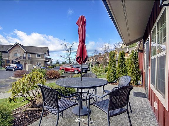 Gorgeous townhome-style condo in Birch Bay! The Tides at Birch Bay is a lovely condo community with craftsman exteriors & luxurious contemporary interiors. This end unit features a sunny front patio w/partial bay views, as well as a roomy private back deck (w/gas BBQ hook-up!) which backs up to greenery! Main level features living room w/gas fireplace & nice natural light, dining room, and spacious kitchen w/granite counters, glass tile backsplash, long eat-in bar, stainless steel appliances, and a 3/4 bathrm. Upstairs you'll find 2 generous bedrms; one w/a forest view, and one w/partial bay view, plus walk-in closet and a full ensuite bathrm. All this, plus an outdoor pool, hot tub, clubhouse, & large community yard w/expansive bay views!