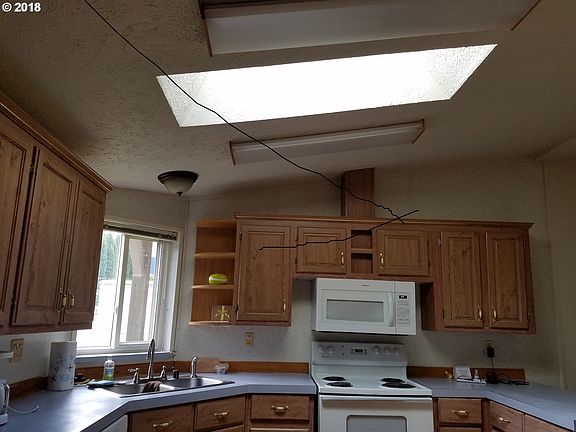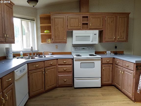 A Charmer. New paint, carpets, vinyl, huge carport to accommodate RV, two drive ways, detached garage, two storage rooms could convert to living space, Lovely fully fenced yard, appliances, spacious rooms, 2 baths, laundry, vinyl windows, fully insulated landscaped yard, cool large covered front deck grape arbor, super location. Manufactured on full foundation. Qualify for loan. This one is special and you will fall in love. EZ show.