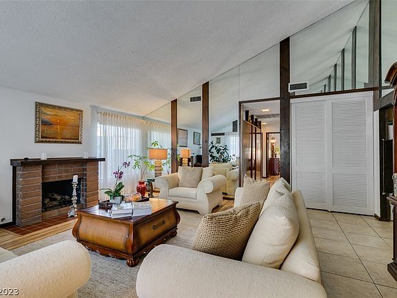 Welcome to this charming 70's built home meticulously maintained! Located in a quiet & established neighborhood, this 3BR 2BA home features a heated pool & a grand brick fireplace that adds warmth & character to the large & open kitchen. The dining room can be used as a sunroom, perfect for the Vegas weather. The oversized kitchen is ready for your creativity to bring it to the 21st century. Well maintained BRs & BAs are ready for your personal touch. Step outside & take a dip in the private heated pool, great for entertaining guests & relaxing. The built in BBQ is ideal for outdoor dining. This home has many upgrades, including a new roof, water treatment system, water heater, pool pump, new floors,& fresh paint. Additionally, all air ducts have been professionally cleaned. While this home may require some updates, it offers endless possibilities & potential to make it your own. With its prime location, this home provides easy access to the airport, & Las Vegas Strip.
