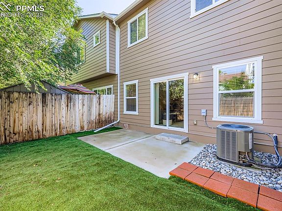 Move right in to this beautifully maintained townhome offering one of the largest private yard spaces you’ll find in the area, a rare feature for townhome living! The main level boasts a bright, open floor plan with a spacious kitchen that flows seamlessly into the dining and living areas, creating the perfect setting for everyday living and entertaining. The kitchen features sleek black appliances, abundant counter space with a breakfast bar, and a pantry for extra storage. Step outside to your private, fenced patio and expansive yard area, ideal for pets, gardening, or simply relaxing outdoors. Located just off the Powers Corridor, you’ll enjoy easy access to all military installations, shopping, dining, entertainment, and the airport. Upstairs, retreat to your private primary suite with an oversized walk-in closet and attached bath. Two additional bedrooms, a full bath, and a conveniently located laundry room complete the upper level. This home also offers excellent storage, great closet space, and an attached single-car garage. Whether you’re looking for your first home or a smart investment property, this townhome has it all, well-maintained interiors, a rare large backyard, and a prime location. Don’t miss your chance to make it yours!
