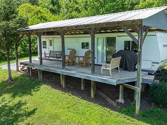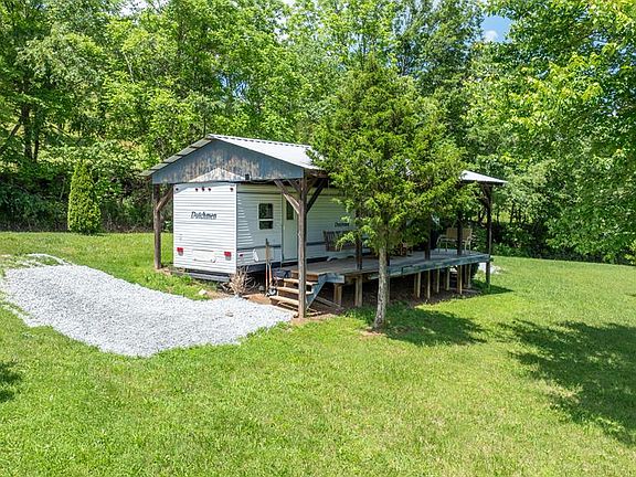 RARE UNRESTRICTED one-of-a-kind mountain and river view land with unparalleled potential! This property features a paved state road leading to the house along the river, with river access at the end of the street for tubing or fishing. The cleared land has a well, power, and septic. The old home and barn have been removed, allowing new opportunities. Live in the 38 ft Dutchmen camper or use it as an Airbnb. The camper includes a 40 ft built-in deck with a metal roof, brand-new beds, flooring, and furniture—all included. You can use the existing septic system or take advantage of the new 3-bedroom, 2-bath septic permit. With great cell phone service, this land can be subdivided, thanks to two separate access points. Concrete footers are already in place for building a house or a barndominium, and the property is perfect for a small campground. Enjoy a private, serene, park-like setting close to Franklin and Bryson City, featuring 100-year-old walnut and cedar trees. This versatile property offers endless opportunities and won't last long. Land is NOT in the floodplain. Schedule your viewing today!