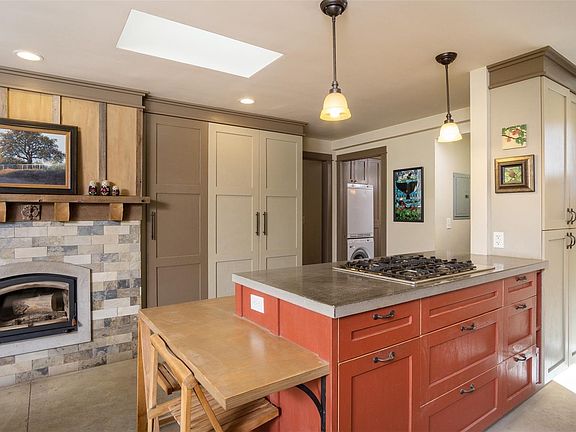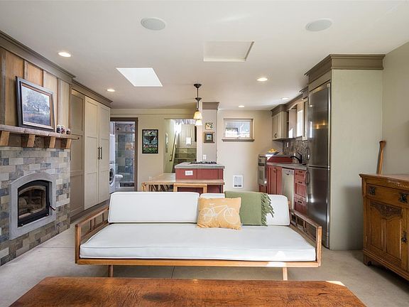 This captivating subterranean home in Leeland Heights has several unique facets that make it unlike any other home in the neighborhood. This home is efficient and naturally insulated, beneficial for the unpredictable Colorado weather. A wood burning fireplace heats the entire home, creating more efficiency and convenience. Skylights and modern lighting fixtures bring vibrant natural light to the space. Built-in shelving and cabinetry throughout the home serve as charming, functional storage options. Stone and tile accents add detail, tying all the elements of the space together. Stainless steel appliances in addition to concrete countertops and flooring add modern, urban flair. The backyard is nothing short of an oasis. A spacious covered patio with a built-in fire pit and seating, a grill with excess storage space underneath, and raised garden beds are just the start. The privacy fence encircles your escape and a separate studio space is a dream. Act fast! This home is a gem.