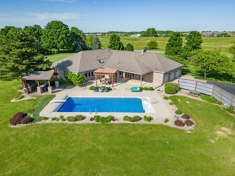 Nicely updated sprawling brick ranch on five acres located across from Hickory Stick GC. This home has it all. Great room w/vaulted ceiling, fireplace, & floor to ceiling-built ins. Updated eat in kitchen with solid surface countertops, center island, & stainless-steel appliances. Formal dining room for family gatherings. Massive master suite with W/I closet, updated bathroom, & private entrance to pool area. Current bonus living room could make a nice 4th bedroom by adding a closet. Like to entertain? Enjoy the large patio, outdoor kitchen/bar area, 20 x 40 inground pool, & pond. Got toys? check out the three-car attached garage & the 2400 sqft detached garage/pole building with three large bays. Easy access to I69, SR 144, & SR 135.