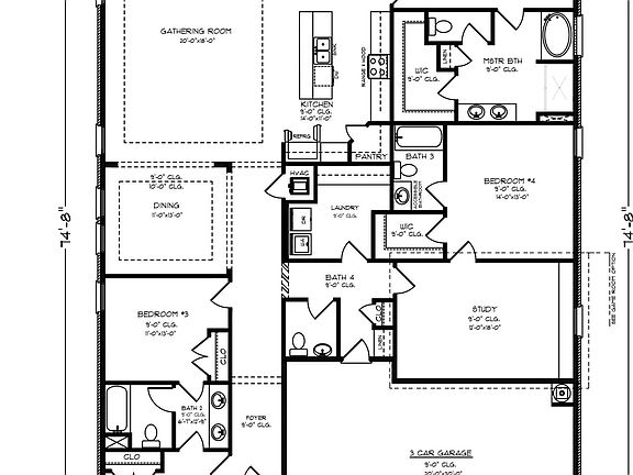 This is the Camden Floor plan. This home is full of space with an appointed dining room, a large study and 4 bedrooms as well as additional garagefor a third car or golf cart. As you enter this home you will find LVP flooring throughout the common areas and plush carpet in the bedroom. Just off the foyer youwill find two bedrooms with a shared bath, double sink vanity and shower tub combo. Trey ceilings are in the dining room, large living room, the study andbedroom 1. The kitchen has a center island with sink, plenty of beautiful cabinetry, a corner pantry and the appliances include a stove microwave and dishwasherand a Kinetico water filtration system. Bedroom 1 features a large bath with garden tub and separate shower as well as a large walk-in closet.