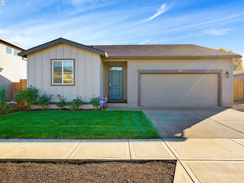 One level open concept home. Large fenced yard, covered patio, kitchen island, quartz countertops, pantry, master with walk-in closet & double sinks, central air conditioning, storage shed, UG sprinklers, small boat/trailer parking area. Security system. Easy access to I-5 & Keizer station