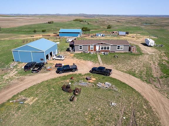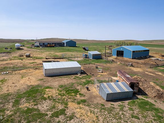 Incredible 40 acre property! Located just 45 minutes from Mandan. The 2400 sq ft home was built in 2015 and features 3 bedrooms and 2 bathrooms all on one level including a primary suite. Entering the home you are greeted with an abundance of light in the living room that opens up to the kitchen, dining room, and 2nd family room. The kitchen features a large island, stainless steel appliances, and a large walk in pantry. The main floor is complete with a mudroom, and storage room. The sliding door lead you to the deck overlooking the the draws that run through the property. The home has a backup Generac generator.