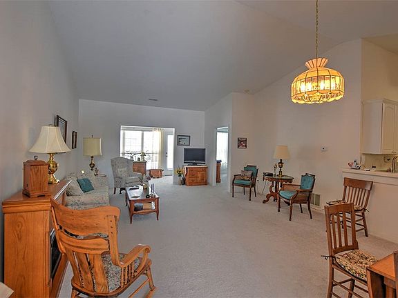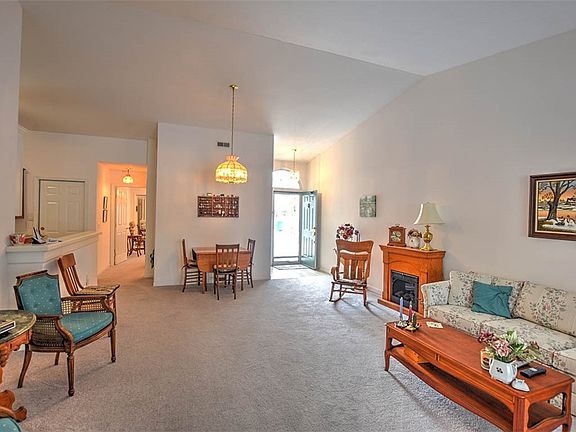 55 and over condo with a built-in community if you want it. The condo is move-in ready with 2 year old carpet and all white walls. All appliances stay too. The community building is just across the way if you want to gather with friends for games or food. The one car attached garage is convenient and lets you stay out of the weather!! Master closet is a walk-in with lots of hanging and storage space. Spare room is on the opposite side of the house from the master. Hall bath has a tub, master bath has a roll-in shower. Make this your home in 2025!