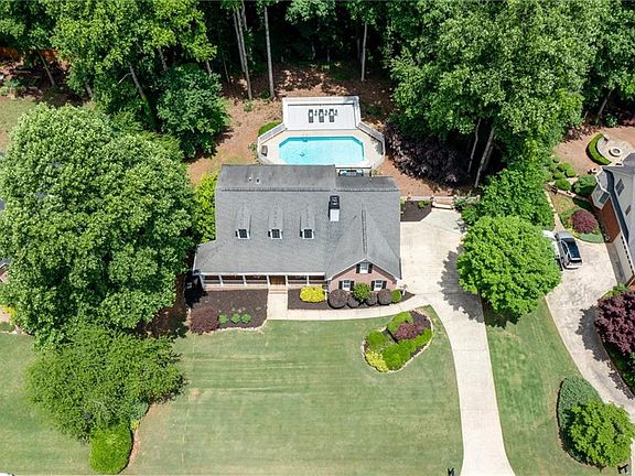 Here's the home with the pool you've been looking for - just in time for summer! It's move-in ready so all you have to do is turn the key! The charming, rocking chair front porch immediately greets you as you walk up. The main level features a huge master suite with an amazing, updated bathroom with a soaking tub, separate shower, granite counters, double vanities and a large walk-in closet. The fireside family room has a beautiful stacked stone fireplace with built-ins on both sides. If you like to cook you'll love this kitchen - it has Kitchen-Aid stainless appliances, plenty of cabinets, and beautiful granite counters. The breakfast room is surrounded by windows that overlook the private yard and pool! And, you have access to your deck from the breakfast room. Just off the kitchen is your updated half bath and laundry room. Upstairs there's an updated full bathroom, along with 3 large bedrooms - one of which is so large it can be used as an office/playroom/bonus room! If you work from home, you'll appreciate there are two offices in the daylight, finished basement along with a full bath, recreation room, and plenty of storage. This south-facing home gives you plenty of sun as you relax in your private pool or lounge on the huge deck overlooking the pool. Need a 3 car garage? This amazing house has it! And it is 4 sides brick! Newer hardwoods on entire main level and new carpet upstairs! Located in Alpharetta but with Forsyth county taxes! This is honestly a rare find!