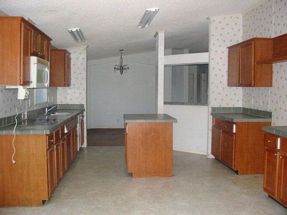 2001 Manufactured Home 3 bedroom, Retreat/Office off from Master Bedroom / 2 bath on .96 acres, Kitchen with Eat In Breakfast Nook, separate dining room, Living Room & Den w/ fireplace & utility room.