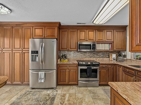 - Features: Breakfast Bar, Breakfast Area, Kitchen Exhaust Fan, Stainless Steel Appliances, Solid Surface Counters