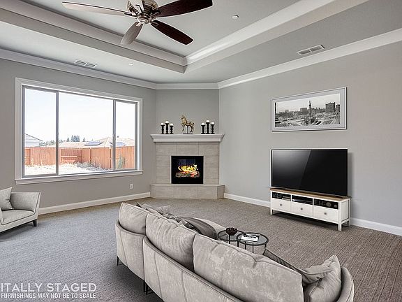 Amenities include tile shower & tile surround above tub, stylish quartz & granite countertops, tile roof, 3-car garage, 10'-11' ceilings, some 8' doors, upgraded light and plumbing fixtures with upgraded stainless steel appliances, some crown molding, stylish cabinets, carpet/tile floors, large owner's bedroom, and front & rear landscape.