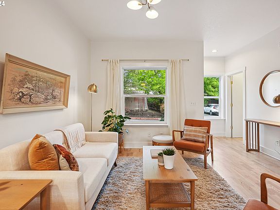 This well organized, small condo community is tucked away off the main street and includes your own assigned parking space. Easy access to various amenities such as brunch spots, plant shops, coffee shops, dog parks, vintage stores, and public transportation. An ideal home for those looking for convenience and a touch of tranquility. Bike score 95! Filled with golden light this quiet, end unit condo town home has a unique and spacious layout. Creamy hardwoods, high ceilings, fresh paint and fashionable fixtures make an inviting main floor. Grab your coffee from the well-planned kitchen and stroll out back to your covered patio sittin' spot. Large powder room on the mezzanine and full bath on the second floor where you will find three bedrooms each with a walk in closet and lots of windows. Walk in entry closet and large Storage room on patio too. Bring all your things! [Home Energy Score = 9. HES Report at https://rpt.greenbuildingregistry.com/hes/OR10227863]