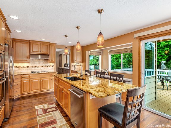 Meticulously cared for home w/ 3BD & 2.1BA on .48 flat acres. Remodeled kitchen w/ SS appliances, gas cooktop, island & granite. Custom cabinets w/ soft close. Master bdrm w/ ensuite & walk-in closet & deck overlooking yard w/ sprinkler system, fire pit & mature apple tree. 38'x36' shop concrete floor, power & water. Access shop by gated road at back of property. Perfect for trailer, toys or work space. This property has it all!