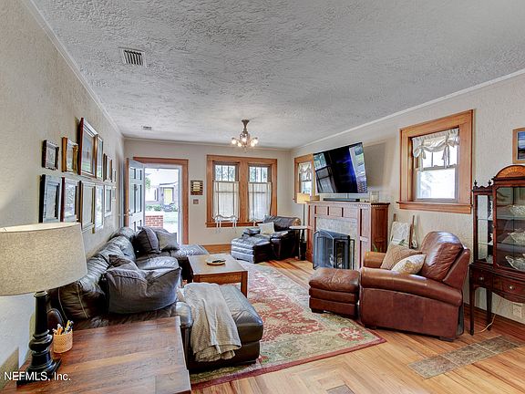 Welcome home to this classic Murray Hill 3/2 bungalow! The large front porch invites you into the spacious living and dining area with original wood floors and rare un-painted wood trim and doors throughout. Nicely updated kitchen with laundry and walk in pantry tucked behind a gorgeous custom stained glass door. The primary bedroom area consists of an en-suite bathroom, with walk in closet, double vanity and oversized shower. The two guest bedrooms/offices both have cedar lined closets and share the full hall bathroom. Current owners added natural gas for new tankless gas water heater, converted fireplace to a ventless gas fireplace, and added a gas range. Outdoor living space includes screened porch, patio area, fruit trees, firepit, storage shed, and an enclosed converted garage space.