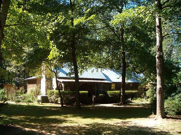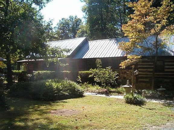 Log home built with old logs from tobacco barns and old buildings, inside and out. Living room has stone fireplace flue for wood or gas heater, all wood floors, claw foot bathtub, loft area on 2nd level for 3rd bedroom. Nice landscaping and yard..large outbuilding/garage