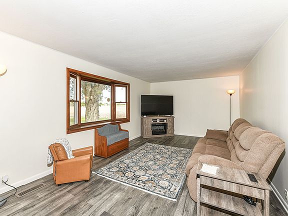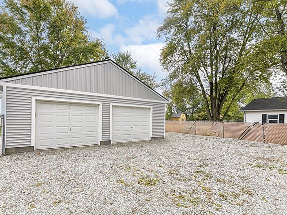 Welcome home to this adorable 2-bedroom, 1-bath ranch that perfectly blends comfort, updates, & tranquility. Nestled at the end of a quiet street & surrounded by mature trees and open land, this home offers a peaceful retreat from the everyday hustle. Step inside to a cozy, inviting layout featuring an eat-in kitchen & freshly painted living spaces. Enjoy your morning coffee on the covered front porch or entertain on the back deck overlooking the large, fully fenced yard-complete with a storage shed & plenty of room for gardening or play. Car enthusiasts or hobbyists will love the oversized detached garage with a workshop area-ideal for projects, tools, or extra storage. Recent updates include new roof on home & garage (2024), new siding on house (2021) & garage (2025), water softener (2024), appliances (2023), HVAC (2022), and fresh interior paint (2025). Peaceful setting, great updates-move-in ready and full of charm!